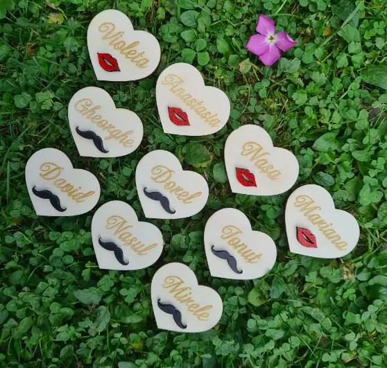 - Cocarde personalizate: Pot fi gravate cu numele mirilor sau data nunții, oferind o amintire deosebită invitaților.